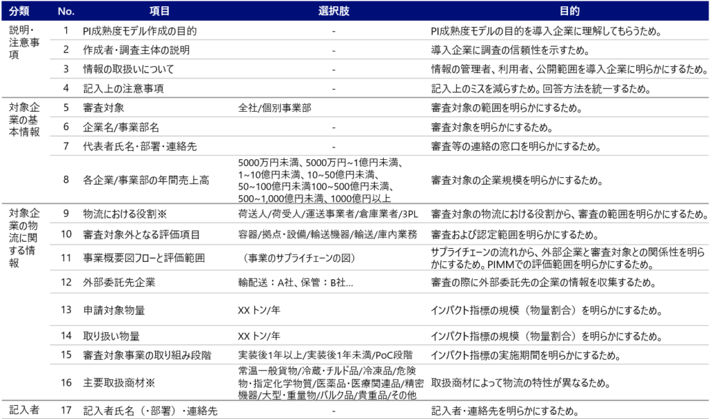 | 物流を構成 する要素 | PIの観点 | Level1 | Level2 | Level3 | Level4 | Level5 |